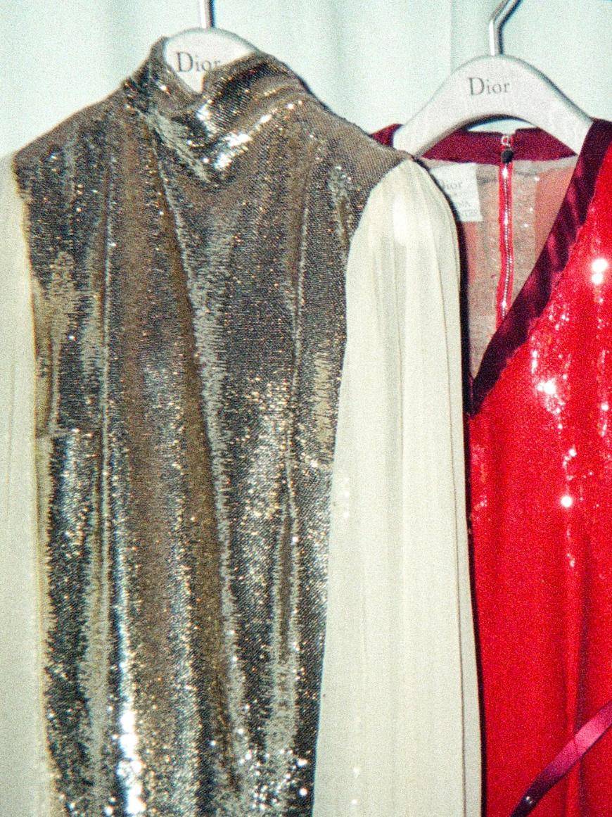 OPENING LOOK:饰有亮片刺绣的迪奥红色丝绸礼服裙